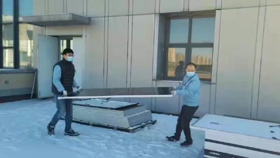 電科能源(18所)檢測中心職工不畏風(fēng)雪搶抓任務(wù)進(jìn)度,面對客戶希望將電站組件送樣進(jìn)行戶外性能和老化測試的要求,檢測中心骨干黨員身體力行,帶領(lǐng)團(tuán)隊(duì)頂風(fēng)冒雪,爭分奪秒進(jìn)行戶外測試。