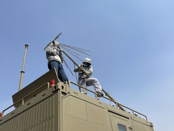 在非洲的沙漠大地上,電科萊斯某海外項(xiàng)目團(tuán)隊(duì)成員為了做好用戶(hù)設(shè)備維護(hù),在室外溫度40℃、設(shè)備艙頂50℃的高溫環(huán)境下開(kāi)展作業(yè)。迎高溫、趕任務(wù)、保交付,他們?cè)诤M庠忈屩袊?guó)電科人的勇氣、責(zé)任與擔(dān)當(dāng)。