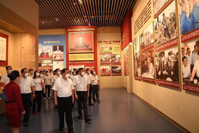 黨的歷史是最生動、最有說服力的教科書。沿著百年黨史脈絡(luò),全體人員依次參觀了“建立中國共產(chǎn)黨奪取新民主主義革命偉大勝利”“成立中華人民共和國進行社會主義革命和建設(shè)”“實行改革開放開創(chuàng)和發(fā)展中國特色社會主義”“推進中國特色社會主義進入新時代全面建成小康社會開啟全面建設(shè)社會主義現(xiàn)代化國家新征程”等四大展區(qū)。珍貴的文物實物、翔實的檔案資料、生動的圖片視頻、逼真的復(fù)原景觀吸引著全體人員駐足凝視、重溫歷史