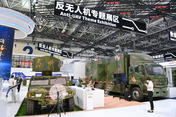 珠海航展,中國電科展區(qū)。具備領先反無人機綜合能力的模塊化、智能化出口型反無人機作戰(zhàn)體系引發(fā)關注。